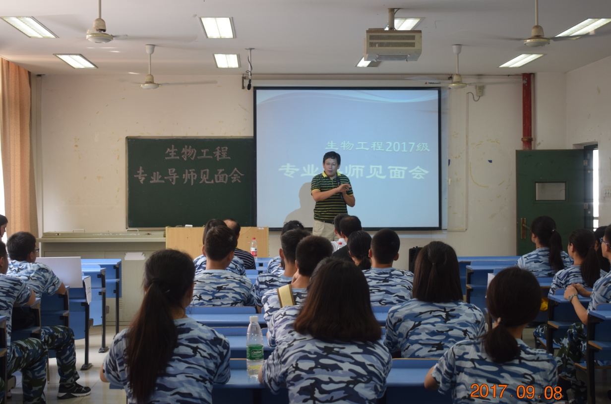 (食品学院学生会 记者 王馨悦)在秋的浓浓韵味里,食品学院迎来了新一批来自五湖四海的2017级新生。为使新同学更进一步了解食品学院院情院史、未来的专业学习及学院知名导师,促进大家快速融入新的集体和环境,食品学院在2017年9月8日上午分别于外经楼203和建工楼A221举行了食品科学与工程和生物工程的专业教师见面会。学院领导、骨干教师分别与新生见面,开展校情校史、院情院史教育以及专业思想教育。