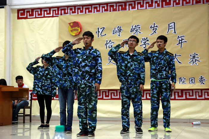 2015年5月7日晚7点,“忆峥嵘岁月 恰同学少年”历史舞台剧大赛如期举行,各支队伍的表演风格迥异,或是气氛严肃而感人肺腑,或是轻松幽默而又意味深长,但演绎出的老一辈革命先烈的红色精神内涵却始终如一。比赛现场,同学们穿上精心准备的服装、戴上手工制作的道具,加上引人入胜的精彩演绎,一幕幕的剧情紧凑的衔接,将一个个英雄故事完美立体的呈现在舞台上,呈现在观众和评委面前。其中,由食品科学与工程132班带来的《永远的“一二•九”》脱颖而出,凭借出彩的表演、精彩的剧情将当年影响深远的一二•九抗日救亡运动演绎的入木三分,深深吸引了在场的评委和观众,最终夺得冠军桂冠。同样令人印象深刻的还有生物工程131班带来的《金色的鱼钩》、食品质量与安全141班的《戊戌变法》等,每个参赛班级的话剧富含学习与创新意识,富有内涵和感染力,弘扬了时代精神,展现了当代大学生昂扬向上的精神风貌和良好的社会责任感。