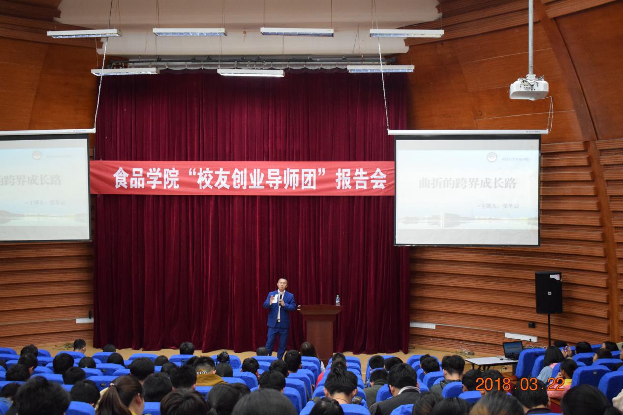 为了丰富校园生活,进一步推动创新创业教育工作,食品学院于2018年3月22日晚7点理生楼报告厅举办了“校友创业导师团”报告会。出席本次活动的嘉宾有食品学院96级校友、上海玖逸投资有限公司合伙人张冬云,食品学院89级校友、中江国际信托股份有限公司上市办主任邓哲,食品学院党委副书记刘志凤,食品学院就业办主任杨轶思等。