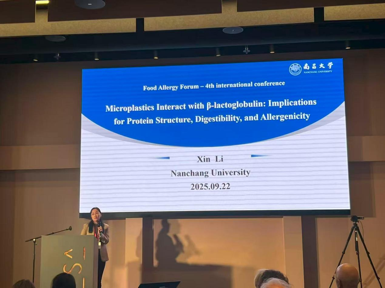 南昌大学中德联合研究院陈红兵教授在过敏原管理专场做了题为《中国食物过敏原管理的现状与发展》的报告,李欣教授在速览环节介绍了《微塑料与β-乳球蛋白的相互作用:对蛋白质结构、可消化性和致敏性的影响》。同时海报展示《高脂肪饮食诱导的肥胖是否为食物过敏的协同因素》,从代谢角度揭示过敏发病新机制。这些成果收到国外学者的广泛关注,提出是值得继跟踪和深入研究的方向,承办方TNO提出希望有机会开展合作。