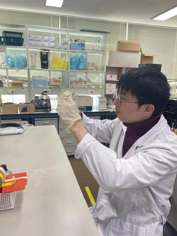 因此,他思考是否可以开发一种副作用较小的功能性食品来缓解肠道负担,面对这一疑问,他在攻读博士期间选择了膳食红曲菌胞外多糖作为研究对象,希望能够为我国肠道疾病的预防尽一份力,真正实现功能性食品的规模化制备,将实验室的研究成果应用于实际生产中,践行大食物观。他深知“不经一番彻骨寒,怎得梅花扑鼻香”,因此他每周累计实验时间达到80多个小时,测了几千个试剂盒,用了上万支枪头,炎炎夏日里实验服被汗水浸透,数九寒冬里手脚冰凉麻木,这些经历为他带来了更多灵感的碰撞与思考。终于,在经历无数次尝试及不断与导师探讨,他发现外源物质金雀异黄酮的添加是重要的突破点,大幅度提高了红曲菌分泌胞外多糖产量。基于此,他深入研究了膳食红曲菌胞外多糖对肠道损伤的保护机制,有效构建了保护肠道损伤及功能缺失的理论与技术。