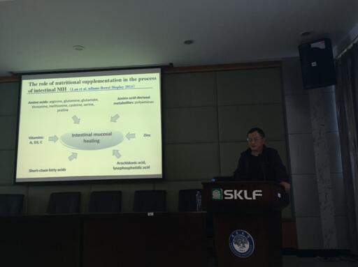 印院士还介绍了猪小肠上皮隐窝-绒毛轴更新与蛋白代谢分子机制(国家自然科学基金重点项目)的研究进展与发现;总结了营养与肠道健康研究方面的五个热点方向与趋势。与会的师生对此次学术报告反响热烈,收到很好的效果。
