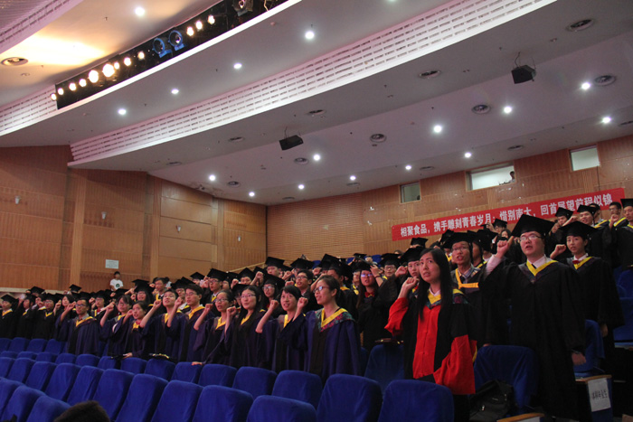 最后,在食品学院党委书记谭杰致毕业祝福词后,硕士研究生代表、2012届食品科学专业毕业生陈绪军同学带领全体毕业生宣誓,在慷慨激昂的宣誓词中,毕业典礼圆满结束。