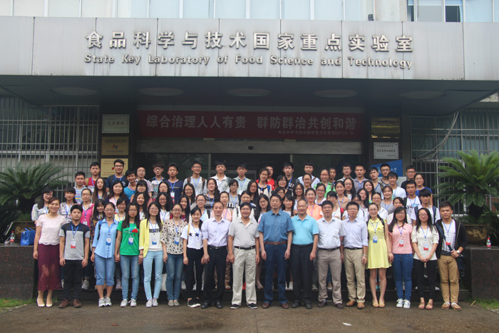 开营仪式的最后,南昌大学副校长谢明勇,食品学院院长刘成梅等领导与来自全国各地的大学生及食品学院师生集体进行了合影留念。 开营仪式结束后,来自全国各地的优秀大学生兴致勃勃的参观了国家重点实验室、中德食品工程中心、生物质转化中心和中德联合研究院等科研单位,对南昌大学的食品学科科研环境作了了解。