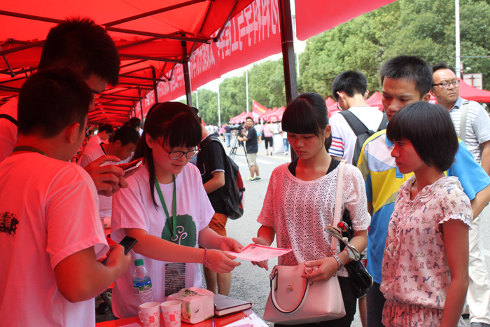 (食品学院学生会 记者 周声怡)南昌的九月天朗气清、活力四射,在这一年开学时,南昌大学食品学院迎来了2014级的新生。为了响应学校迎新的号召,也为了让新生能快速地融入到新学校新环境,食品学院学生会设置了多个迎新点,分别是5栋的新生信息录入处和1、2栋内的住宿处迎新。