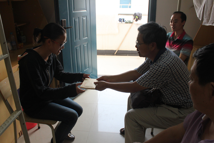 询问到家庭状况,冯升燃低下头轻轻地说到,家中的主要收入是妈妈辛苦卖鱼所得,但这也仅能勉强糊口,家中的积蓄已经到了连学费都付不起的地步。说道这儿,冯升燃用感激地眼神看着刘院长,虽然家里付不起,但是多亏了社会爱心人士和学校的帮助,学费这一问题很快就得到了解决。她表示,大恩不言谢,她以后一定会不辜负学校和社会的期望,用切实的行动来报答学校与社会。听完冯升燃的话,刘院长赞许地地点了点头,并鼓励她在大学中要继续努力,好好学习,有困难就向他们反映。话毕,院长拿出一个鼓鼓囊囊的信封,递予冯升燃。冯升燃立马从座位上站了起来,恭敬地双手接下,不停地说着谢谢。刘成梅说,这是对冯升燃的鼓励与帮助,希望她能有一个精彩的大学生活。