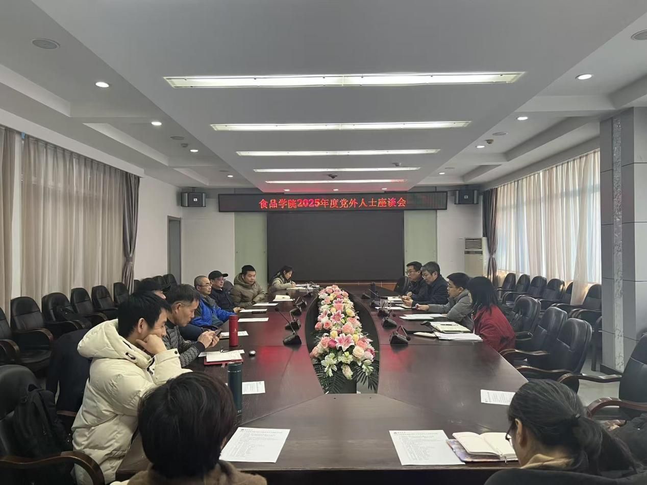 为深入贯彻落实新时代党的统一战线工作要求,近日,学院在食品科学与资源挖掘全国重点实验室201会议室召开2025年度党外人士座谈会,广泛凝聚党外人士智慧力量,共同谋划学院高质量发展新篇章。院长殷军艺、院党委书记温平威、院党委副书记明海伟出席会议,会议由副院长黄霏主持,学院各党外人士代表参加座谈。