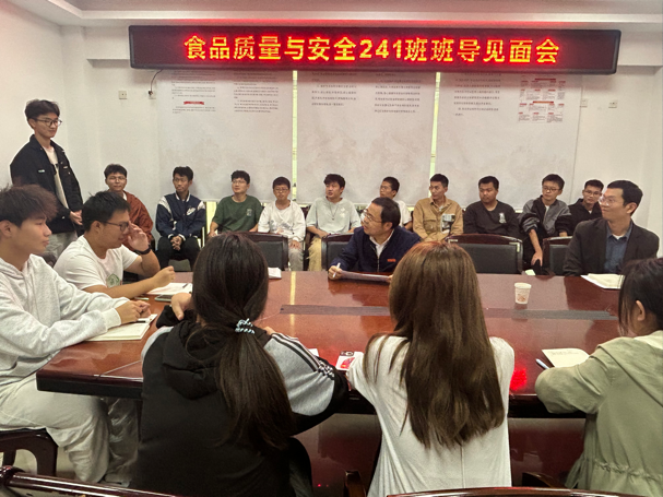 11月6日,食品学院食品质量与安全241班班导见面会在学生公寓2栋顺利举行,副校长涂宗财作为“班级导师”深入学生公寓,与食品学子开展面对面交流座谈。