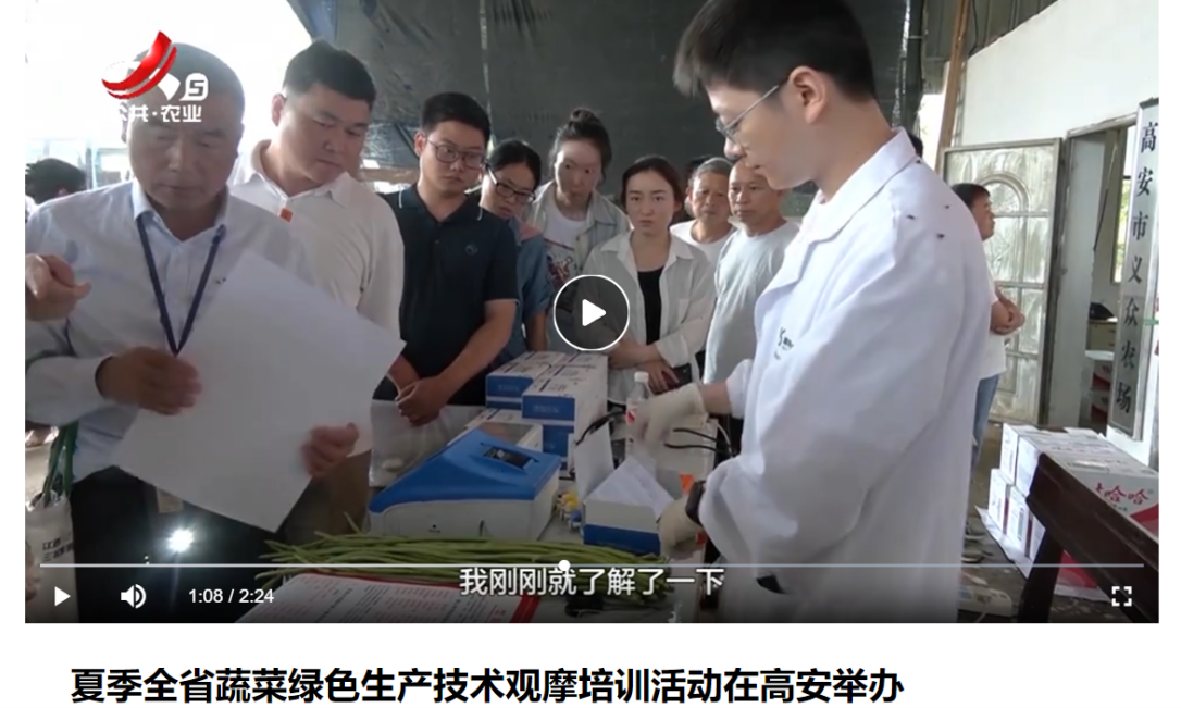 经过一年的推广应用,初步形成了“高校研发+企业落地”和“政府引导+多级联动”为特点的跨系统、跨区域协作推广模式。如与省农业农村厅、省农产品质量安全检测中心、南昌市农产品质量安全中心、九江市农产品质量安全中心,以及江西现代农业产业技术体系等合作,推动了该技术在农业领域的推广应用,江西农业新闻频道进行了多次报道。与省市场监管局、省食品检验检测研究院和鹰潭市场监管局合作,在鹰潭大唐农博城食品检测中心建立示范点,对大唐农博城批发市场内销售的食用农产品进行快速检测,实现了精准定量检测,促进了该技术在市场监管系统的推广普及。