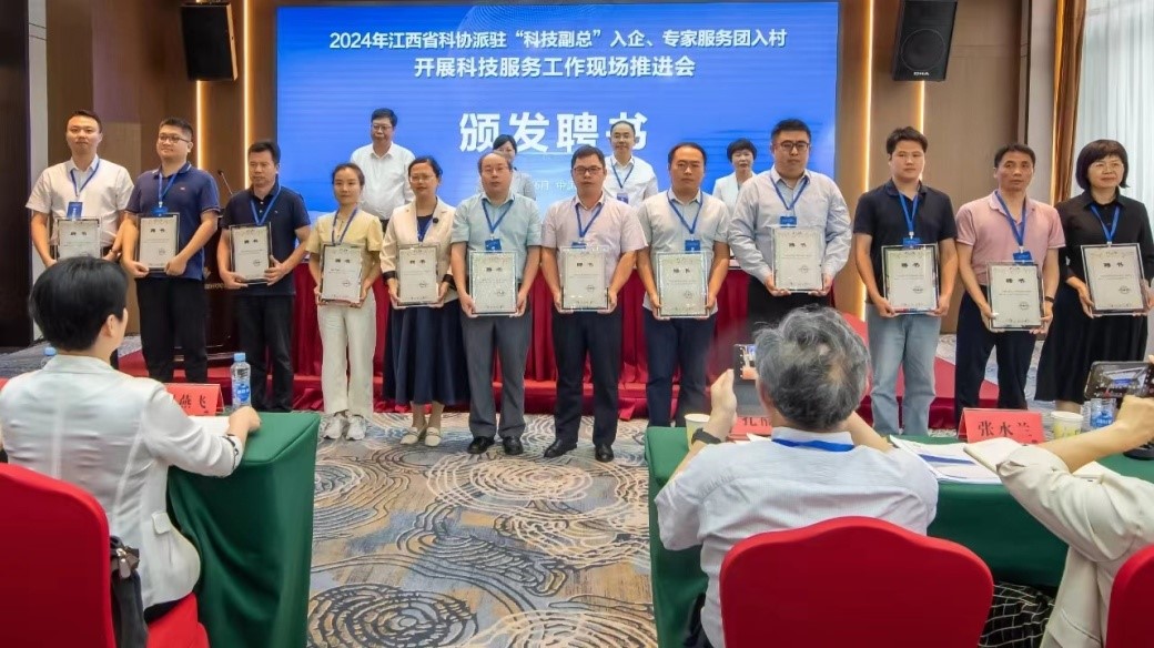 2024年6月26日,江西省科协派驻“科技副总”入企、专家服务团入村开展科技服务工作现场推进会在宜春召开,省科协党组书记曾萍出席会议并致辞,与会领导向“食代先锋”食品产业链科技服务团巫小丹副教授等12名首批“科技副总”代表颁发聘书。