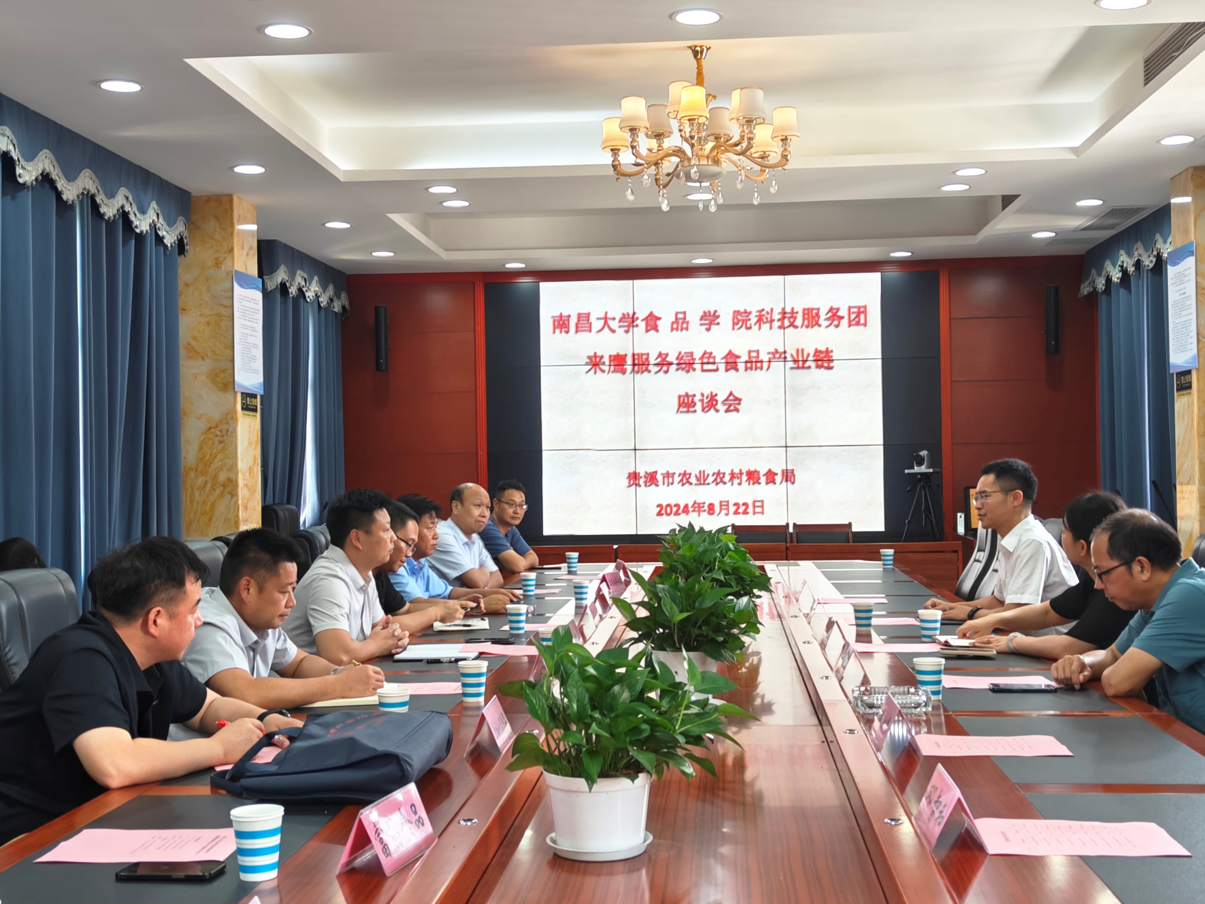 2024年8月22日,南昌大学“食代先锋”食品产业链科技服务团严萍副书记、陈军副院长、钟业俊副研究员、戴涛涛讲师一行到鹰潭服务绿色食品产业链,参观企业并了解企业存在的技术瓶颈,开展企业技术服务座谈会。