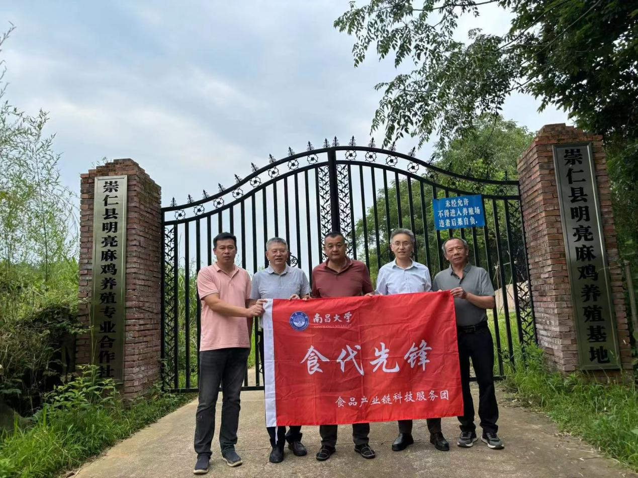 2024年5月19日,南昌大学食品学科专家服务团吴凌伟副研究员、王水兴副教授等一行奔赴抚州市崇仁县开展畜禽养殖和加工指导服务。在崇仁县科技局和农业农村局及流坊岭村领导陪同下,服务团先后到崇仁县明亮麻鸡养殖基地、崇仁县明亮麻鸡养殖专业合作社、崇仁时锋贸易有限公司等企业座谈交流及考察,了解企业养殖、产品加工和销售难题,为企业发展排忧解难。