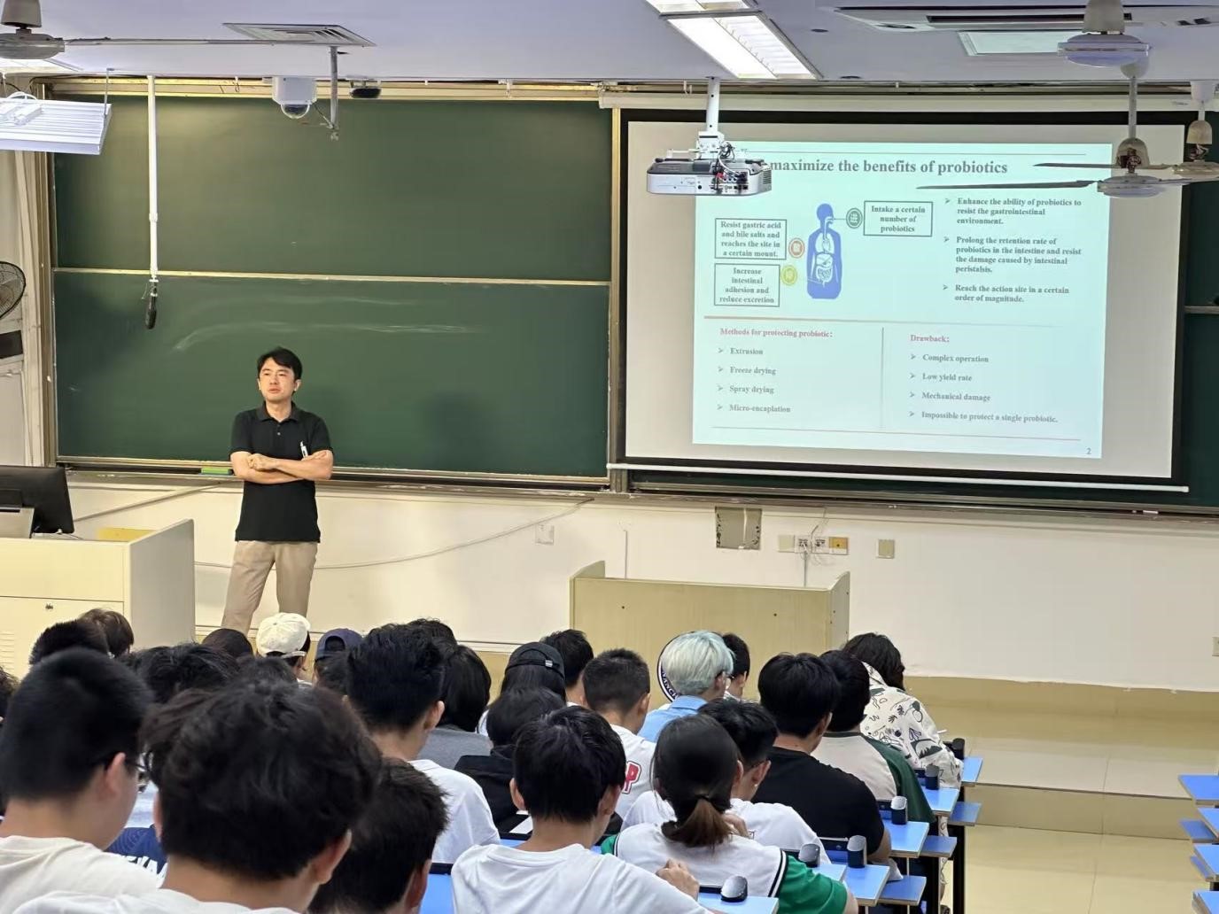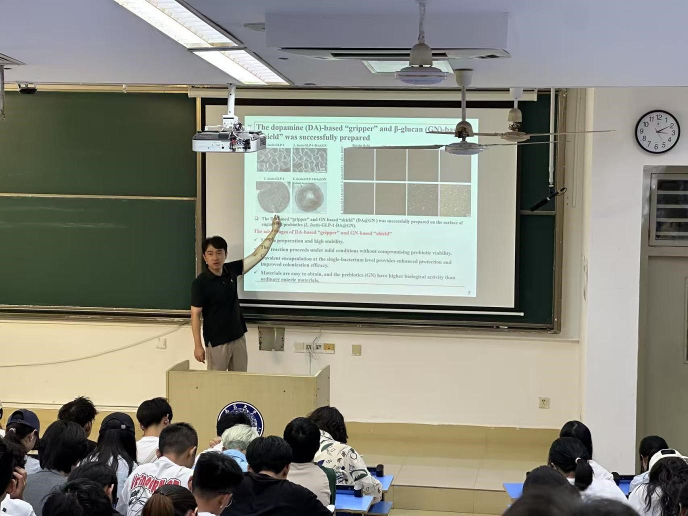 讲座中,万昊教授结合学院益生菌发酵技术、功能性多糖挖掘等多个科研实例,详细阐述了科研选题的核心价值。他强调,科研成功的关键在于坚韧不拔的毅力和协同攻关能力,面对困难时尤需注重团队合作与跨学科交流。