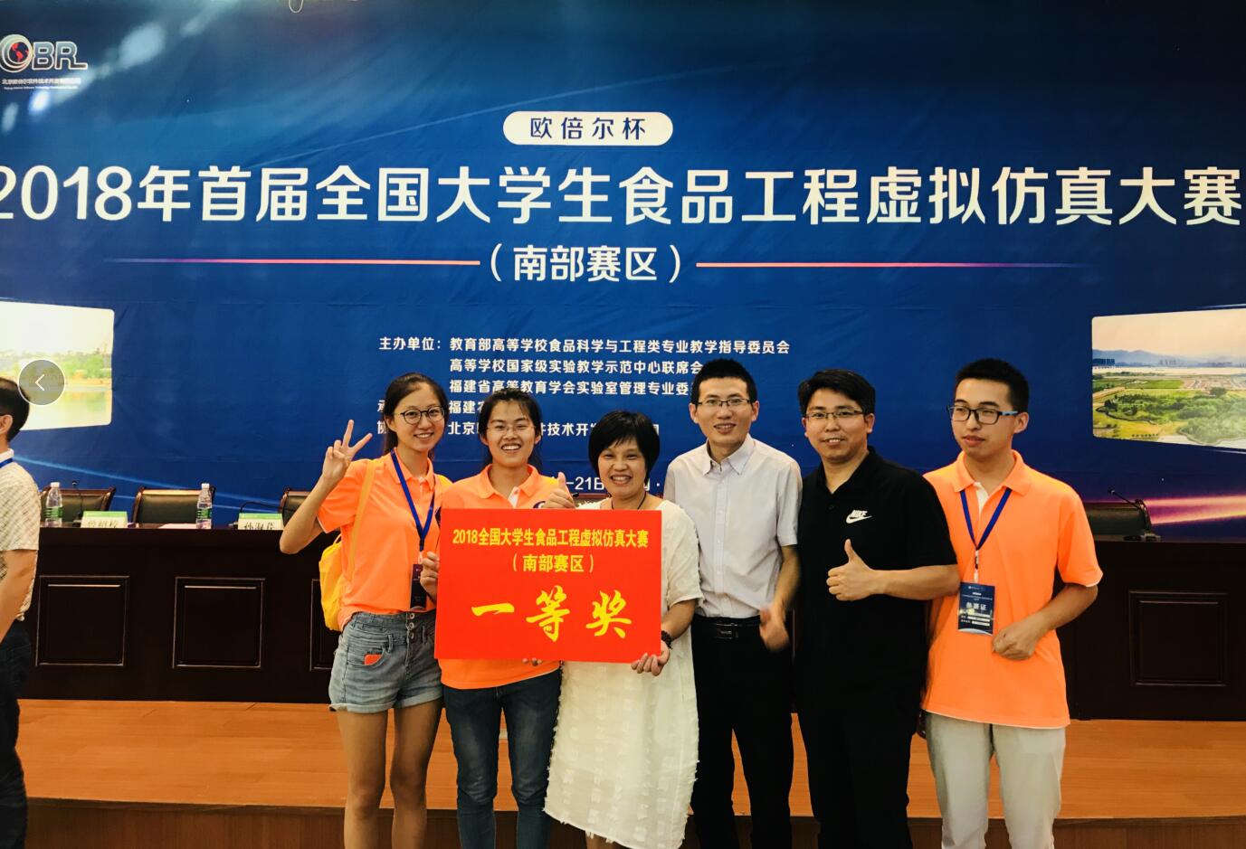 2018年8月22-25日,首届全国大学生食品工程虚拟仿真大赛总决赛在江南大学举行,由我院食品科学与工程专业16级彭葱葱、李祎铭、黄海荣组成的三人小组取得了总决赛一等奖的好成绩,我院教师罗舜菁、潘军辉、刘军平参与指导。