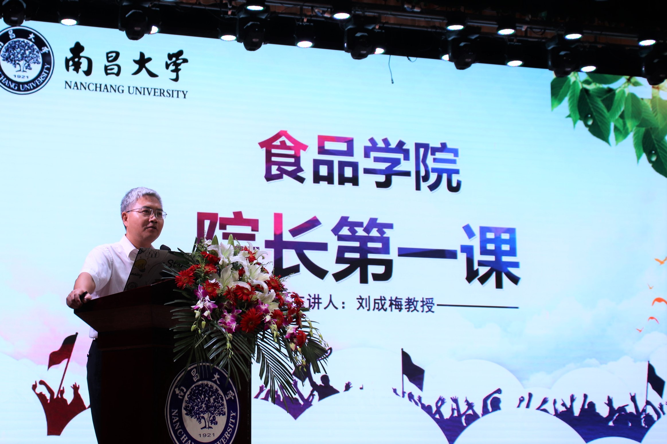 在热烈的掌声中,开学典礼落下帷幕。稍作休息后,刘成梅院长为新同学们带来了“开学第一课”,进行专业引导与职业领航,他强调,食品营养与健康行业的发展已经受到了全球的广泛关注,并纳入了国家发展规划纲要,学科基础研究已日渐重要。希望同学们要保有“五心”,积极向上,与食品人同向同行。
