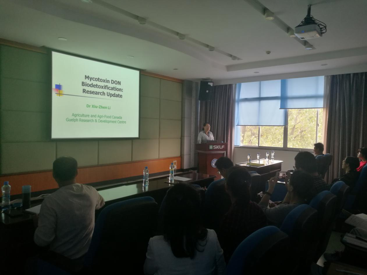 2019年10月16日上午,加拿大农业与农业食品部圭尔夫食品研究中心研究员李秀珍博士应邀到我校开展学术交流,并作了题为《Mycotoxin DON Biodetoxification: Research Update》的学术报告。报告会由南昌大学食品科学与技术国家重点实验室主任谢明勇教授主持,食品学院部分教师与近百名研究生参与了聆听和交流。