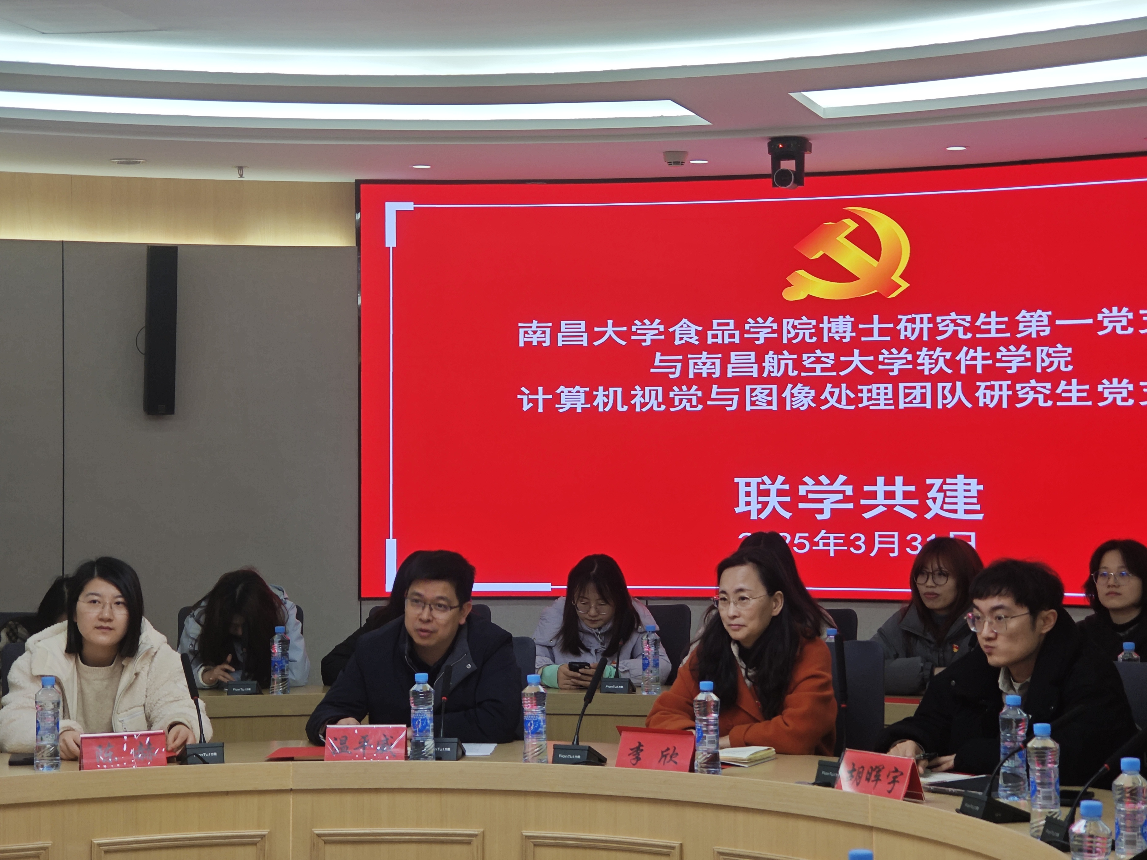 为深入学习贯彻党的二十届三中全会精神和习近平总书记考察江西重要讲话精神,充分发挥全国高校“百个研究生样板党支部”示范引领作用,2025年3月31日上午,南昌大学食品学院博士研究生第一党支部与南昌航空大学软件学院计算机视觉与图像处理团队研究生党支部开展联学共建活动。