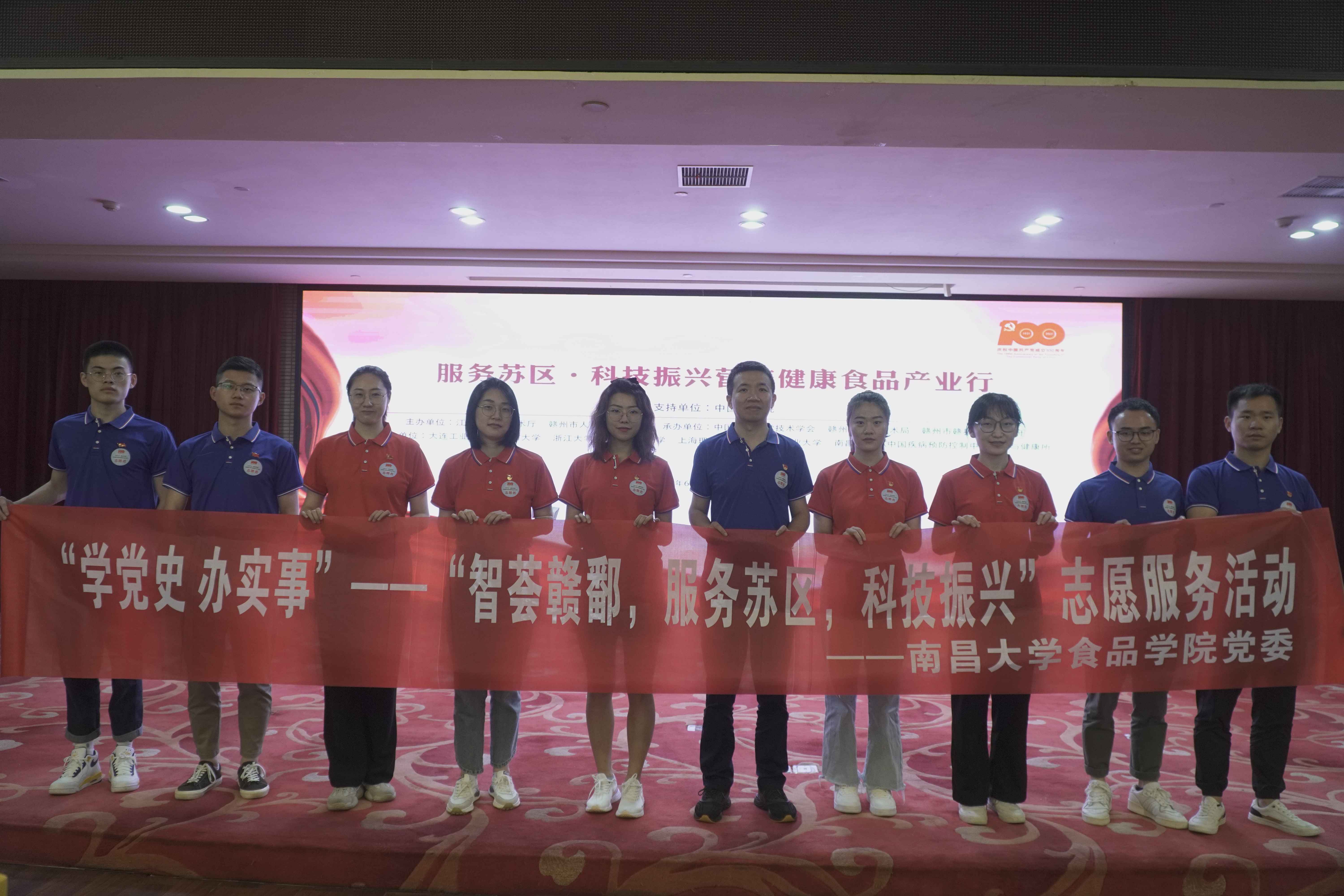 2021年6月21日,“智荟赣鄱——服务苏区,科技振兴营养健康食品产业行”启动仪式在江西赣州顺利举行。本次活动由中国工程院支持,江西省科技厅、赣州市人民政府主办,中国食品科学技术学会、赣州市科技局、赣州市赣县区人民政府承办,南昌大学在内的八所高校和科研机构参与了此次活动。南昌大学食品学院党委勇于担当、积极作为,由党委委员、副院长殷军艺研究员带队,组织黄晓君、宋萧萧、姚豪颖叶等师生党员赴赣州开展了“学党史、办实事”——“智荟赣鄱、服务苏区、科级振兴”志愿服务活动。