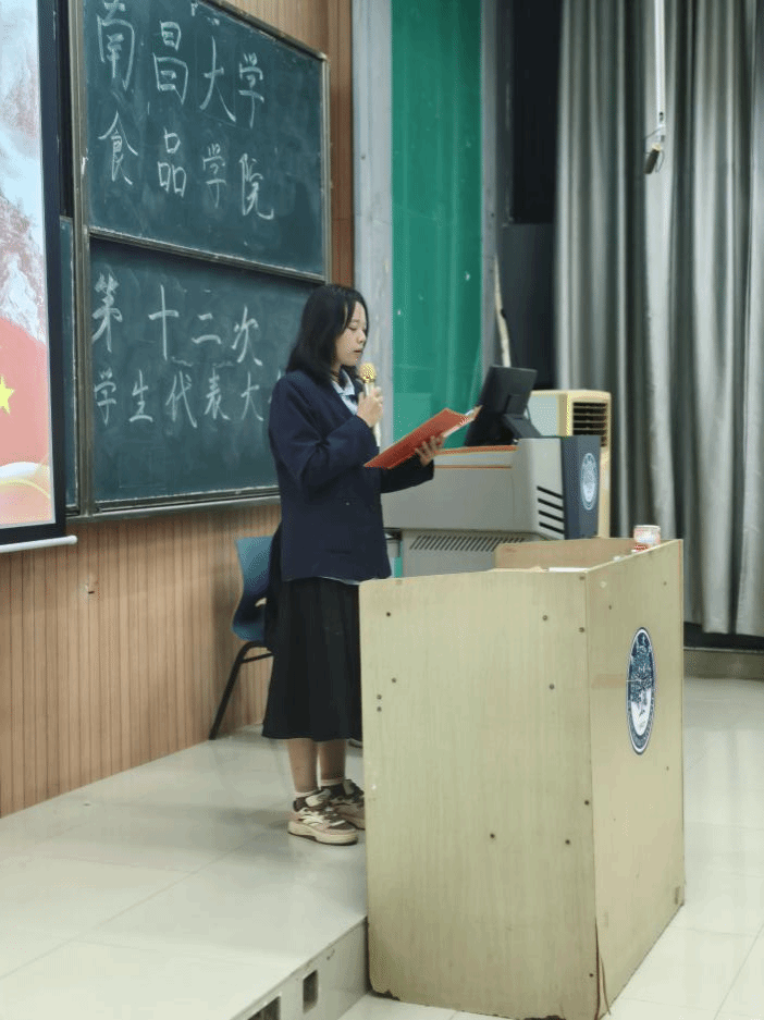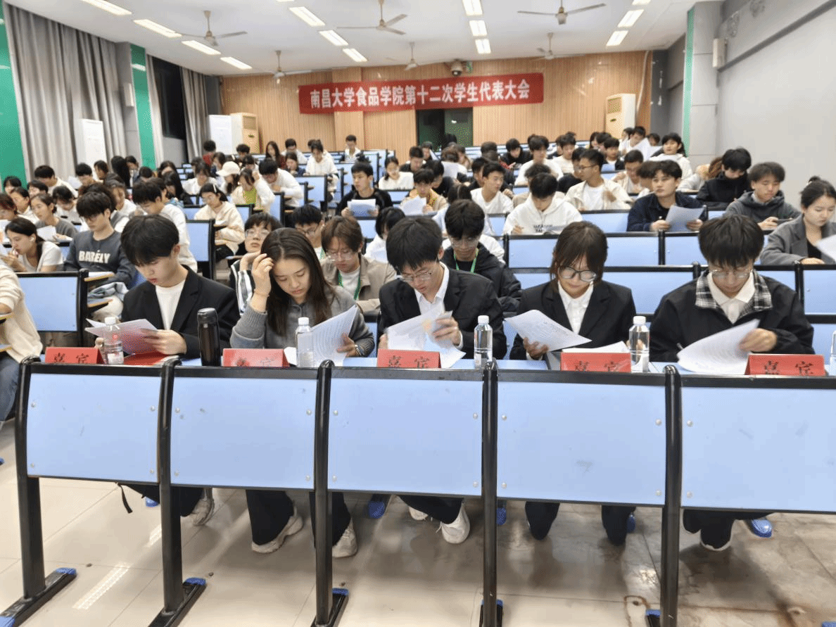 11月6日晚19:00,南昌大学食品学院第十二次学生代表大会在建工楼A506举行。学院团委书记赖莎莎老师、学院第十一届学生会主席团成员吴毓梁以及学院全体学生代表出席大会。