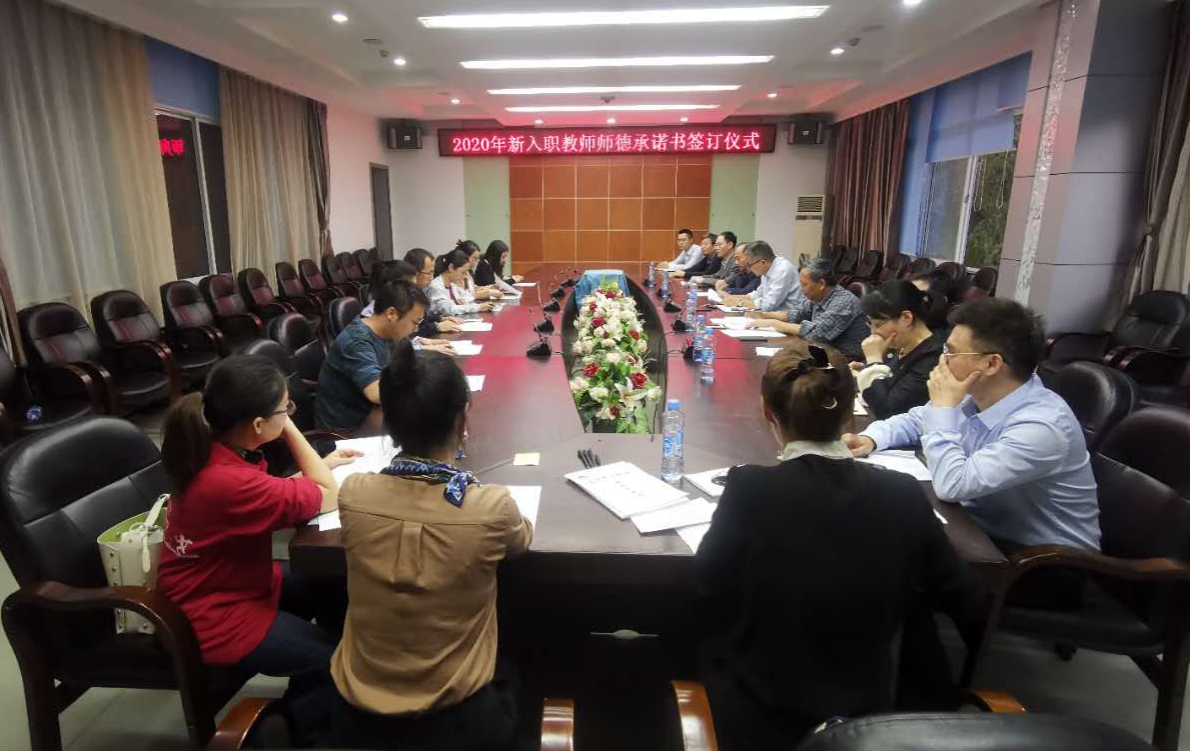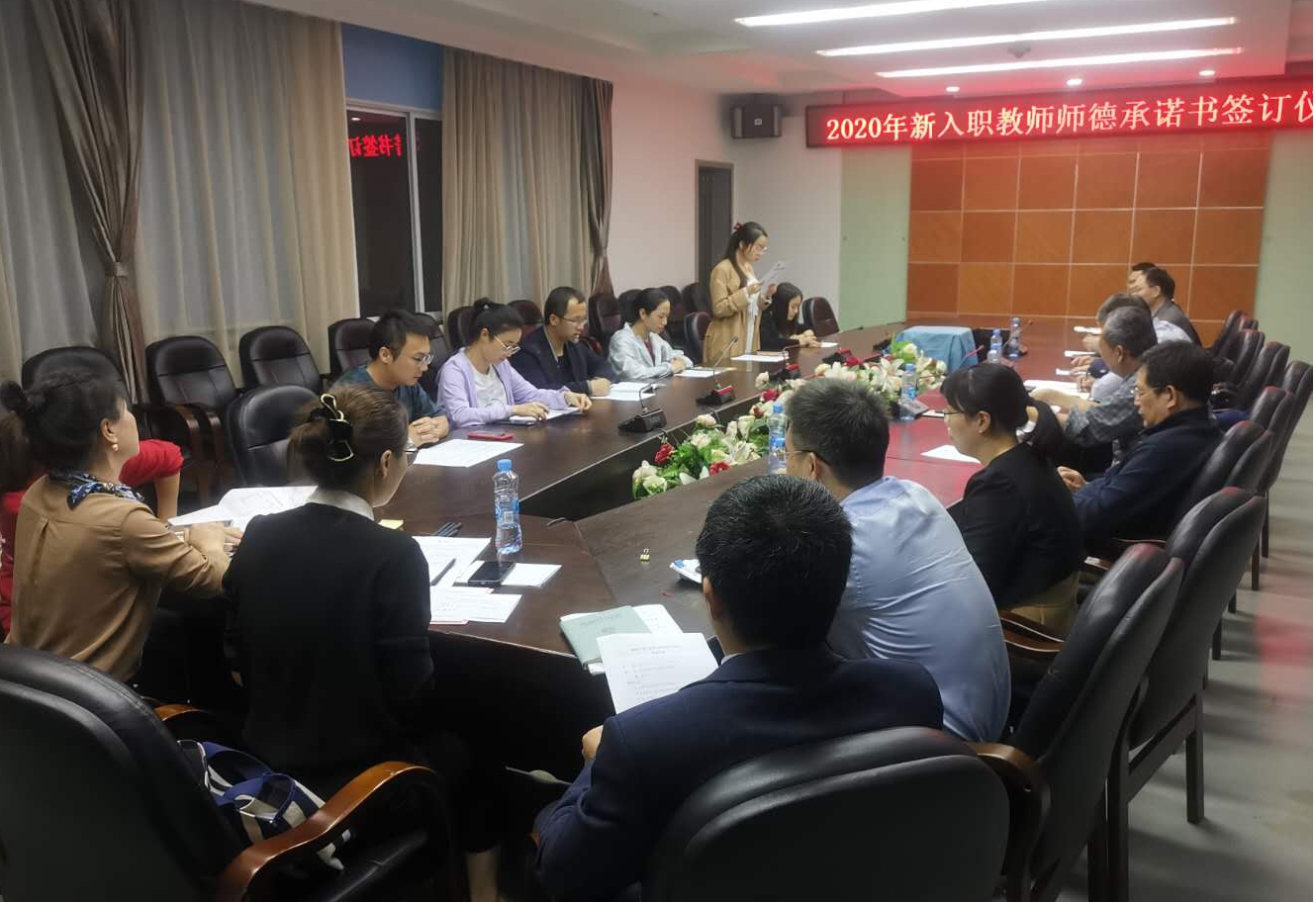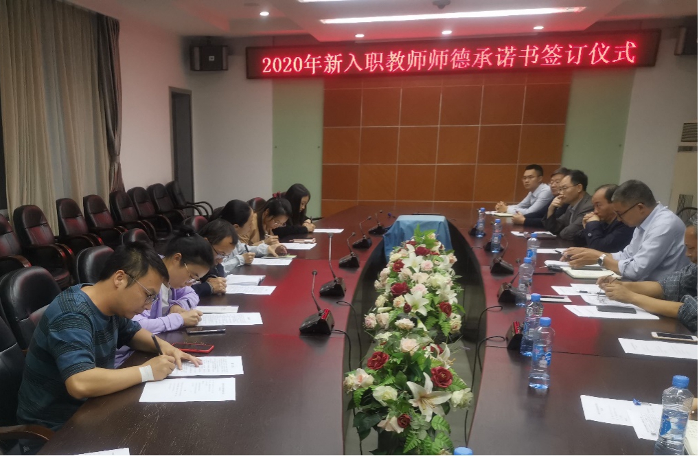 聂少平院长首先介绍了开展此项活动的意义及参加活动的全体人员,并代表学院对新入职教师的到来表达诚挚的欢迎。随后,由新引进的高层次人才黎晓阳老师代表新入职教师宣读师德承诺书并做郑重承诺,在郑重的承诺声中,新入职教师庄严签订了教师师德承诺书,承诺严格遵守《新时代高校教师职业行为十项准则》等关于教师职业道德、教育行风建设的相关规定和要求,时刻严格要求自己,努力成为一名“四有”好老师。
