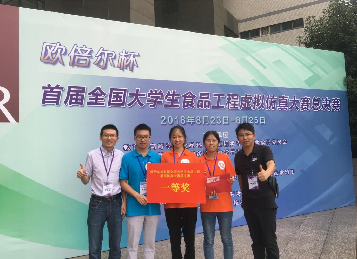 2018年8月22-25日,首届全国大学生食品工程虚拟仿真大赛总决赛在江南大学举行,由我院食品科学与工程专业16级彭葱葱、李祎铭、黄海荣组成的三人小组取得了总决赛一等奖的好成绩,我院教师罗舜菁、潘军辉、刘军平参与指导。