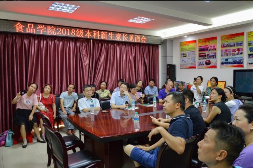 (食品学院 刘鹤鸣摄影 马婷报道) 为加强新生家长对校院的了解,引导新生尽快融入大学生活,9月3日上午11:00,食品学院在前湖校区学生公寓1栋党员活动室举行了新生家长见面会。院党委副书记刘志凤,院党委委员、副院长张国文,院工会主席、院教授委员会主任、食品发酵与生物工程系主任付桂明,院教务办李婷、2017级辅导员马婷等参加此次见面会,并与到场的28名新生家长进行交流互动。