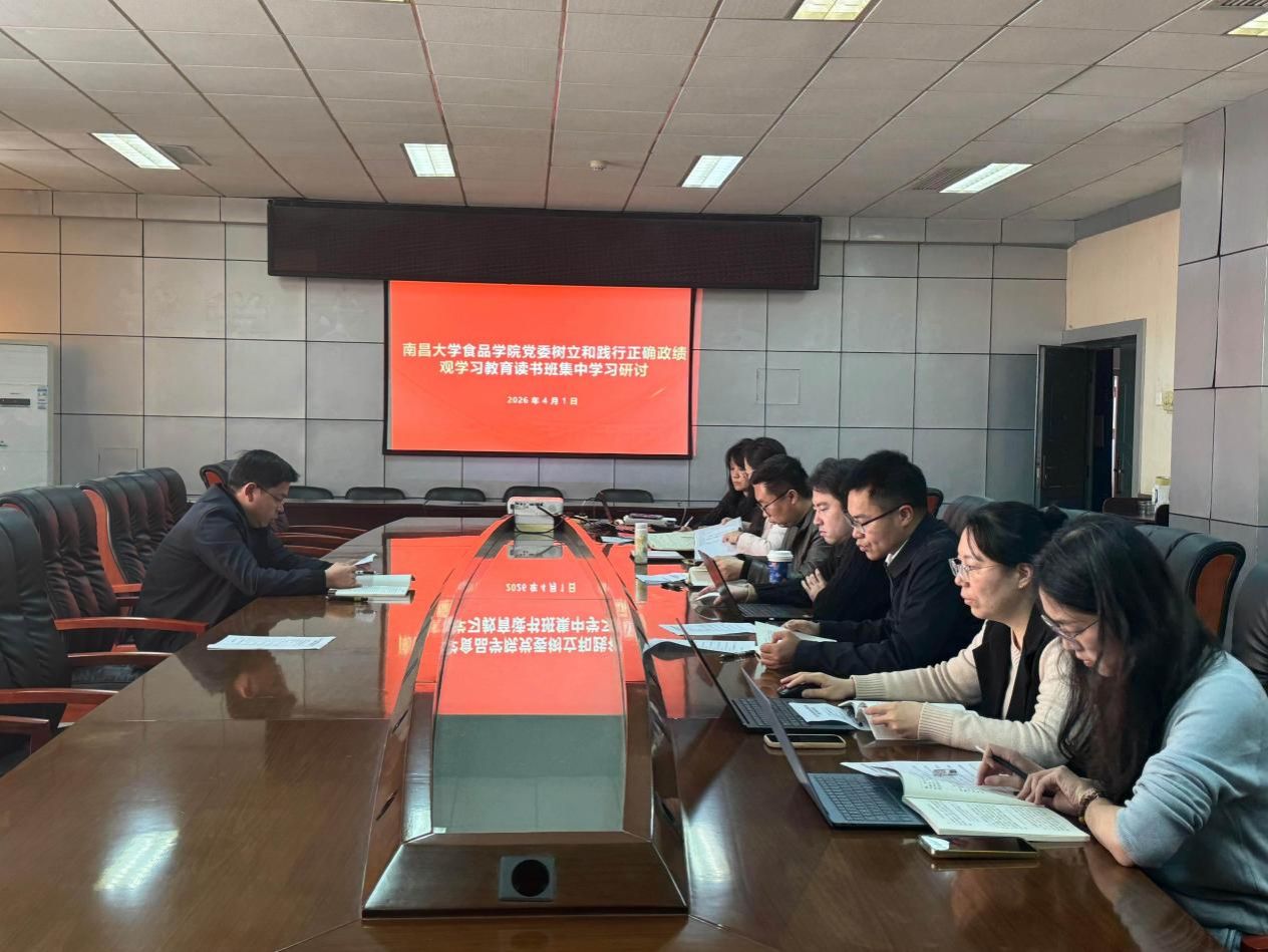 4月1日下午,食品学院党委召开树立和践行正确政绩观学习教育读书班集中学习研讨,学院党政班子成员参会,会议由学院党委书记温平威主持。